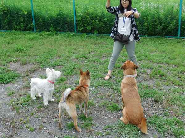 茶々と小春がガウガウ遊びで、ウキが走る。
