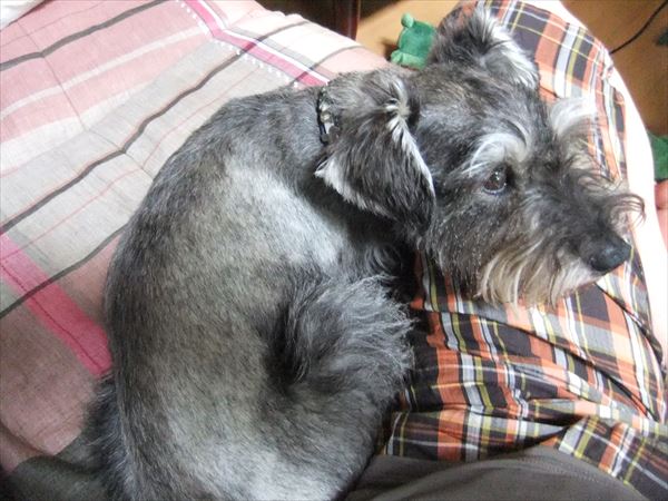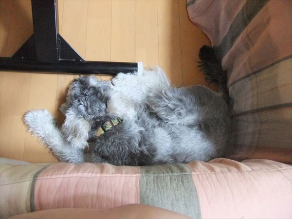 人の足に顎を置いて、じーっと撫ぜてもらうのを待っています。