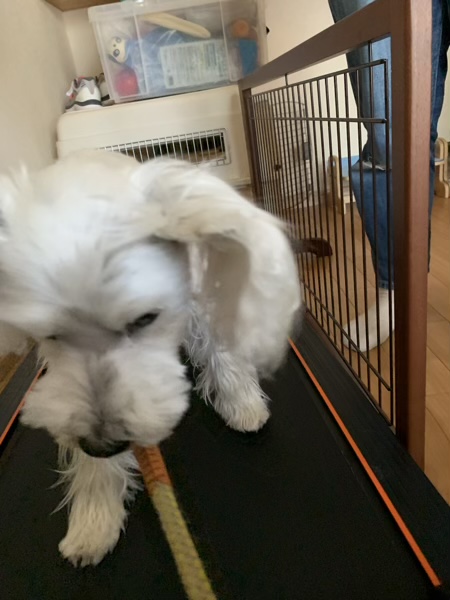 昔、なにかのショーで、じんはルームランナーに乗ったことがあります。