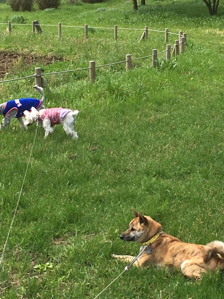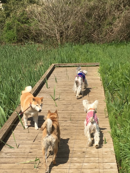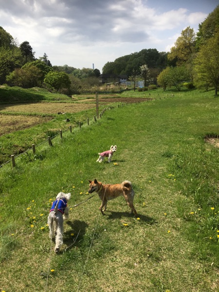 ロングお散歩 じん 2018.04.13 昨日お留守番させた分、今日は頑張って珍しく早起き。 小春&茶々マ マと緑地に行ってきました。(^^) 新緑の季節ですね。 緑が綺麗です。 強い風も、散歩をしている身には気持ちいい。(^^) 今日は歩くぞー! てくてく。 くんくん。 いい顔してるね! タンポポがいっぱい! そこは行き止まりですよー。 そして。 寝ました。(^^) 涼しくて気持ちいいと思ったけど、 日差しが強かったからか、私はしっかり焼けました。 早起きとロングお散歩と日焼け。 私も眠い…。