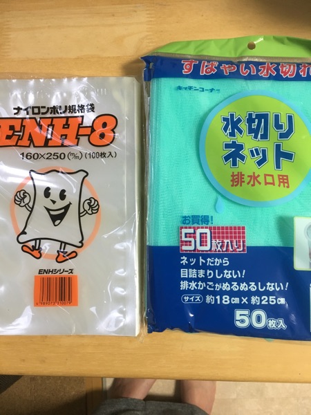 ナイロンポリ製の袋と、水切りネットです。
