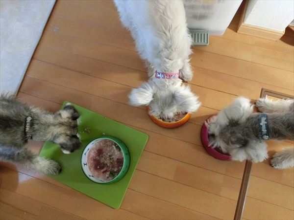 ということで、わんこ達には、今日七草がゆを食べてもらいました。(^^ゞ