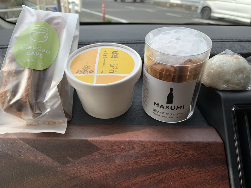 大吟醸粕のアイス、酒粕クラッカー酒饅頭。