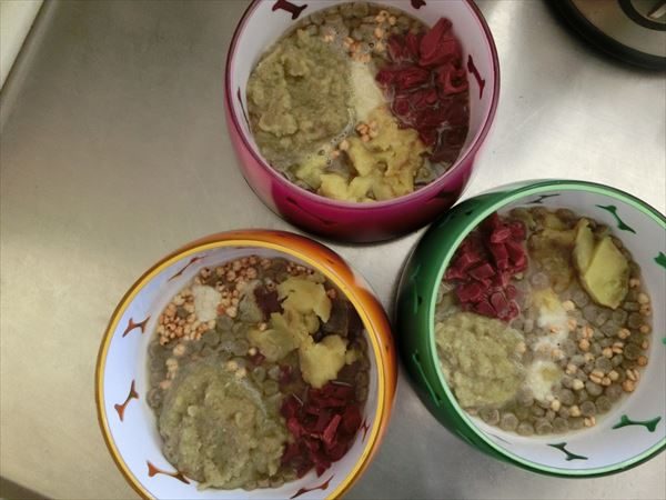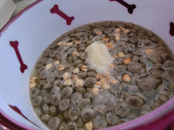 このトッピングで、ドライフードの1/3を置き替えている感じです。