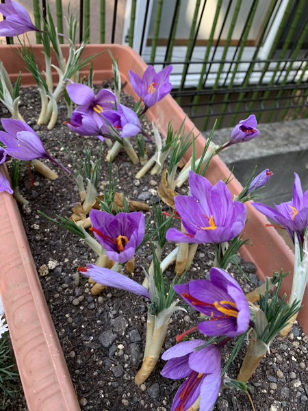 今日もサフラン じん 2020.11.21 昨日咲き始めたなーと思ったサフランですが、 今朝見ると。 すごい!満開!! と思ったら、昼過ぎには。 爛漫だぁー! お日様の力はすごいです。(o^^o) そんなお日様の中で、揃ってお昼寝。 しあわせな風景です。(^^)