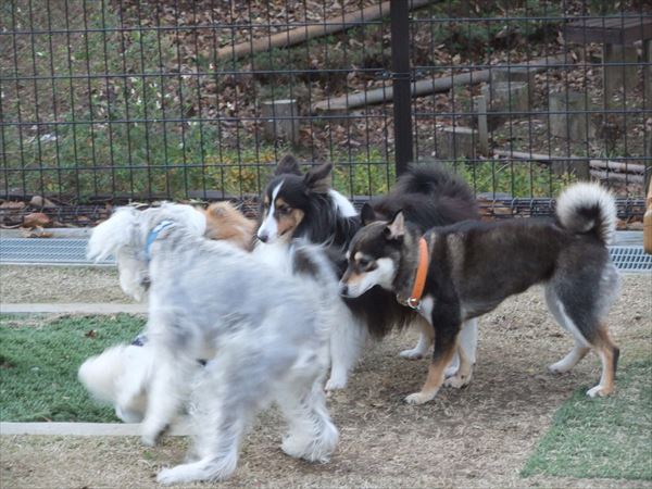 今日は旦那さんが一緒なので、3匹揃ってランに入れました。(^^)