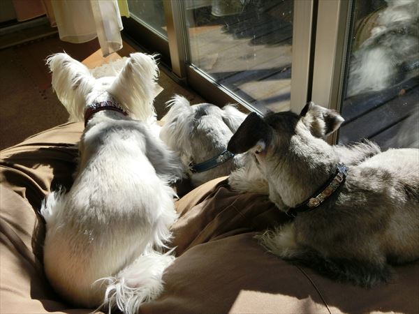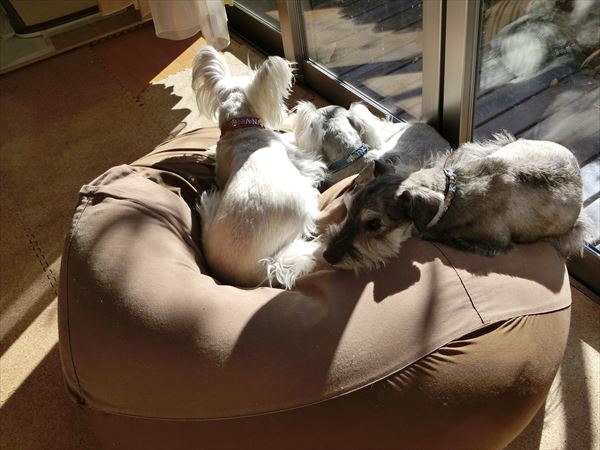 仲良く分けっこ じん 2016.12.16 裏山の木の葉も落ちて、 我が家にもいい日差しが当たるようになってきました。 みんなで仲良く日向ぼっこです。(^^) でもね。 もう少し下がれば、みんなが居心地いいと思うんだけどな。