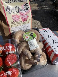 りんごで育てたと言うたまごと、でっかい椎茸!