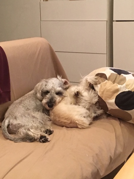 じんがクッションにもたれかかって寝ていた。