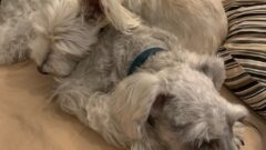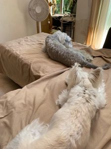 午睡 じん 2019.05.25 昨日は気がつかないふりをしたけど、 ここのところの外遊びで、 2人とも茶色犬に化けました。 思い切ってシャンプー! ついでにフロントラインと、 ファブリック系全部のお洗濯! 疲れました。 でも、すっきり!(╹◡╹)♡ あとは干しているクッションに、 カバーをかければ終わり。 さーて、一休み。 と思ったら。 扇風機の風が来る道筋に、お二人さんが。 おいおい。(^^;) わんこも風は気持ちいいのかな? じゃ、みんなで休憩!(^○^)