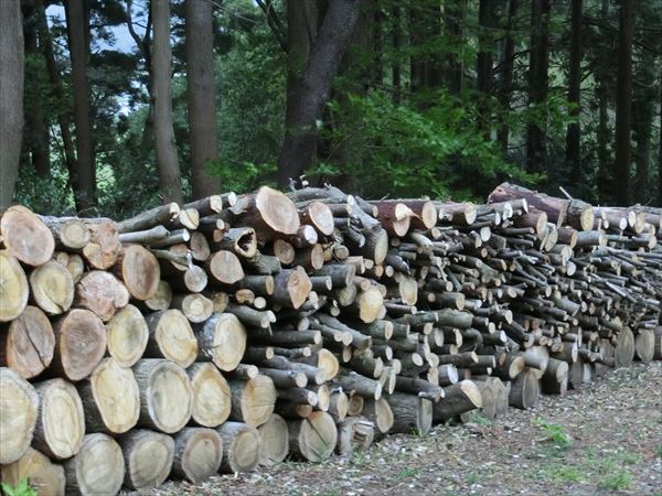 いい薪にするには、切った後、しばらく放置して水分を抜く必要があります。