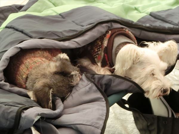 薄着できてしまった旦那さんは、ひたすら縮こまっていました。