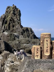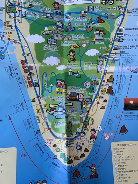 室戸岬 四国一周 2022.05.02 南下し、室戸岬に到着。 室戸岬はジオパークになっているらしく、 途中パンフレットを入力しました。 ついでに、塩と炭のソフトも入手。 ここは歩けそうです! 行きましょう! もっと土の道かと思っていたら、 かなり整備されていました。 でも海風がつよい! 耳はまくれるし。 波がばっしゃーん! 特徴がある岩のところでは、記念撮影。 あー、歩くと気持ちいい!! すっきりします。(o^^o) さ、今度は北上します。 目的は晩御飯なのですが、間に合うかなぁ。