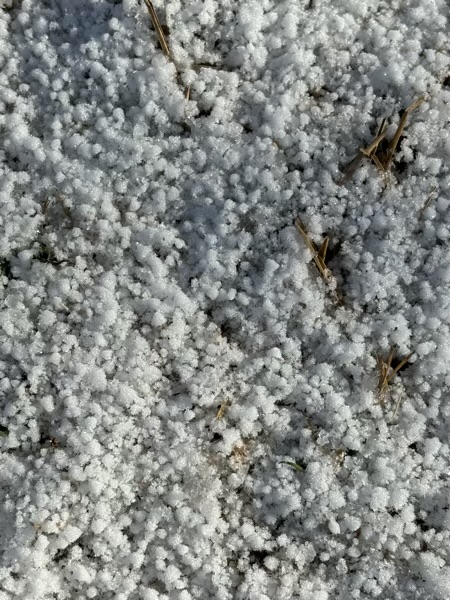 あられぐらいの大きさの粒で、それも寒さで凍ってます。