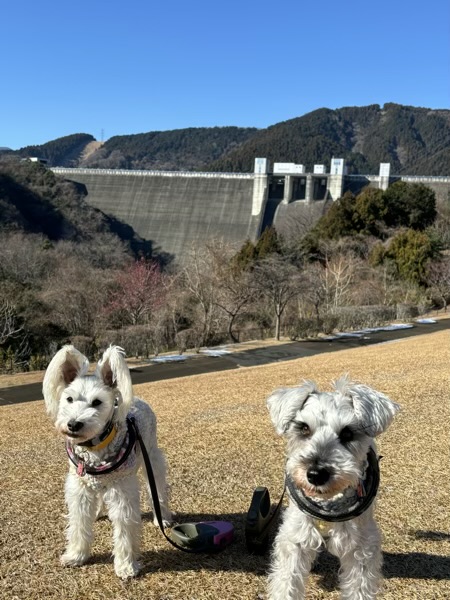 ゆっくり丘の上まで上がり、ダムと記念撮影。