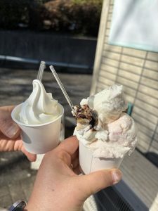 週末限定味のジェラートと、いちごミルクのダブルで!