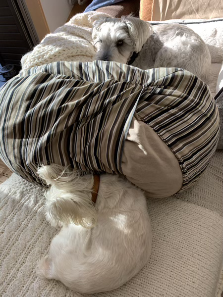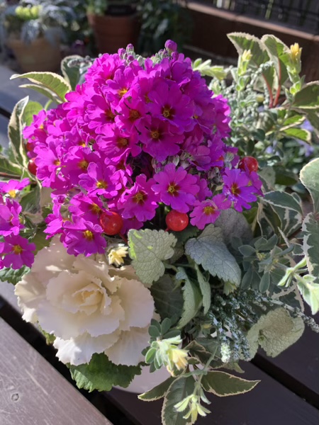 寄せ植え じん 2020.12.20 今日は旦那さんと一緒に、冬の寄せ植えを作りました。 こんな花達が。 こんな風になりました。 お互い色々思うところはありますが。 でも、やっぱりお花は綺麗だなぁ。(^^) その間退屈している子達。 お疲れ様でした。 おやつでもあげようか。(^^)