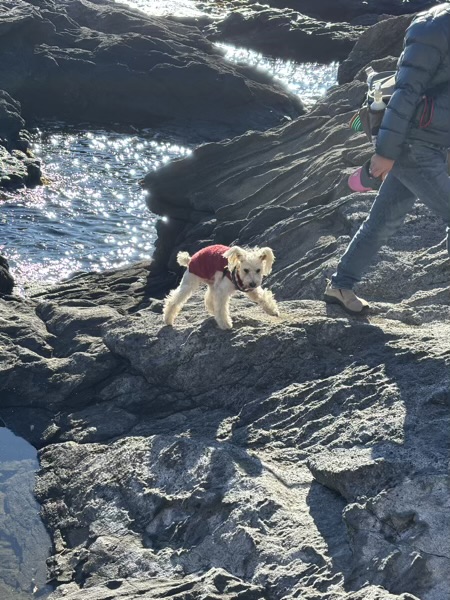 お散歩してこの辺でわんこOKのお店で海鮮丼なんて言う、
