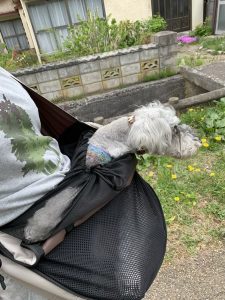 気持ちよさそうにスリングに納まってます。