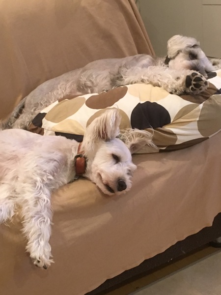 弱虫です じん 2018.08.08 雨が降ったり止んだり。 とりあえず庭でちっちを…と思ったら、 強い風にビビって、じん、しなかった! いつもなら、ななの上掛けは必ずするのに、 かけようとした途端、強い風が吹いて来て、目がまん丸に。 で、逃げ戻ってきた。(^^;) そのあとは、くっつきモード。 暑いよと、逃げたら。 なな、よくふくとシンクロしてたなーと、 懐かしく思い出しました。(^^) 明日はお散歩行けるかなぁ。