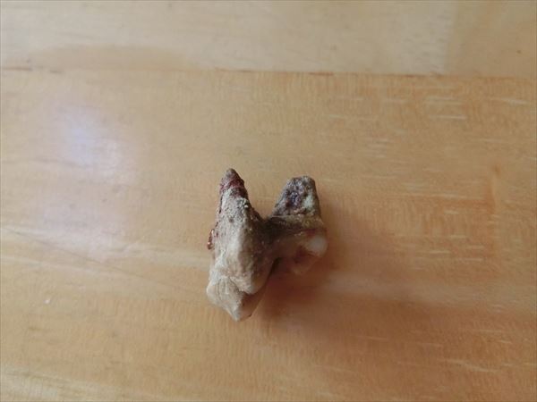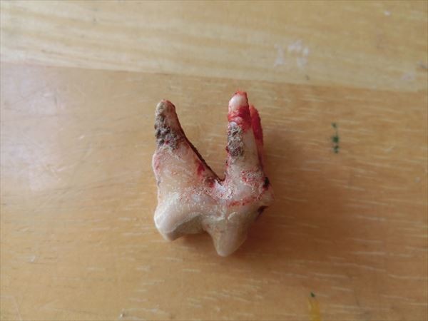 この左奥の歯は、歯石が固まっていたおかげで固定されていただけで、