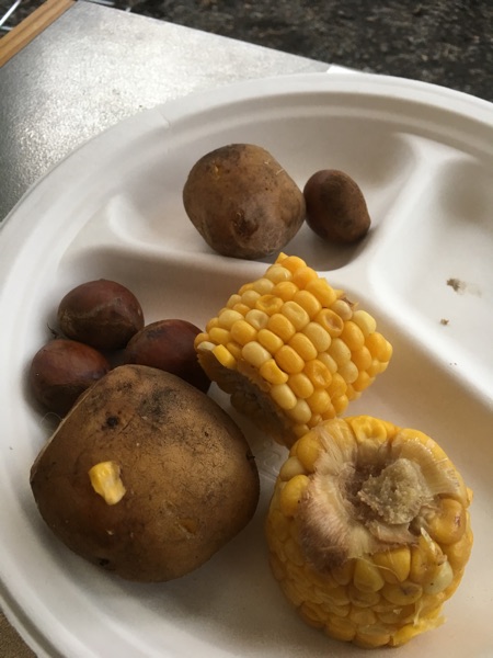 栗やトウモロコシ、ジャガイモの蒸かしたの。