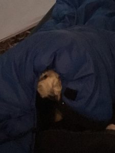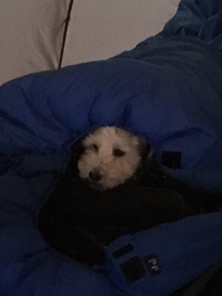途中から寝袋の外に出て頭を出してきました。