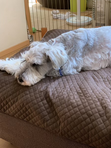 暑い じん 2021.07.28 座って編んでいたら、ぺた。 移動してお昼を食べてたら、ぺた。 ルンバに任せて座ったら、ぺた。 どこに行ってもななが追いかけてきます。 さすがに暑い。(^^;) じんはなながいなくなったスペースを独り占め。 ちょっと羨ましいです。 お茶でも淹れてくるか。 今度はどこに座ろうかな。
