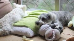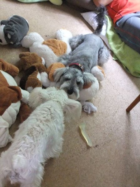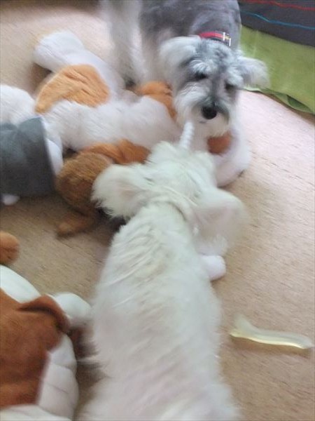 また、引っ張りっこをしています。(゜.゜)