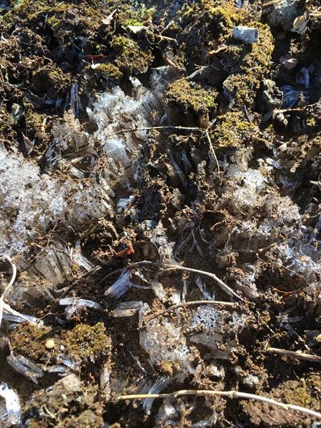 起きるのが遅い私が、ほとんど見ない、霜柱。