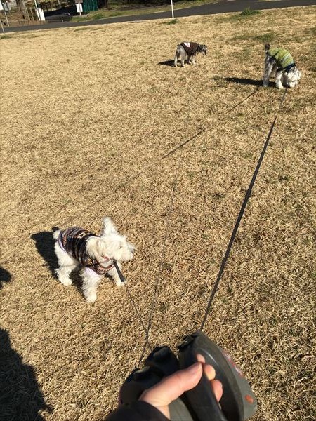 旦那さんと2人だと、3わんこ揃ってランに入れるのですが、