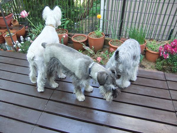 そして3匹そろって、お隣のにゃんこチェックへ。