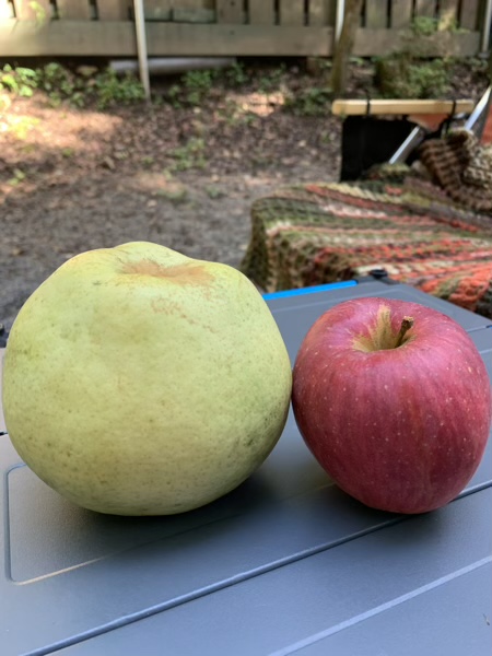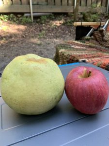 昨日道の駅やいたで仕入れた、なしとりんご。