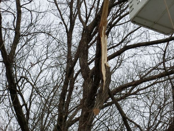 雪の重みで折れたらしく、作業車が来ていました。(^^ゞ