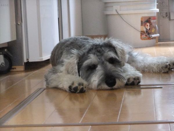 梅雨模様 じん 2014.06.10 涼しいうちにと、 朝、そんなに遅くない時間に、散歩に行ったにも関わらず、 湿気がひどく、帰ってきたら、汗が、つーっと。(-_-) 雨でなかなか散歩に行けなかったら、3わんこ。 散歩の最中は、はしゃぎまわっていたのにもかかわらず、 ご覧の有様です。 じん なな ふく みんな、だらーっとだらけ気味。(^^;) ま、どうせ、ちょっと休んだら、また追っかけっこが始まるのでしょうか。 しばし、平和な時間です。(^^)