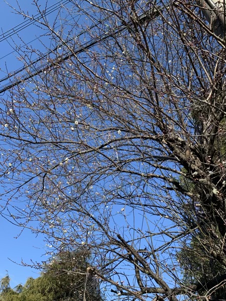 梅 じん 2023.01.08 大病してから、旦那さんの散歩率が増えました。 でも今は旦那さんは風邪ひき。 なので、暖かい時間に一緒に行くことにしました。 青い空が綺麗だなーときょろきょろしていたら。 少しですが、もう梅が咲いていました! 早いなぁ。 さ、散歩終了。 あれ? 散歩の後はご飯!と刷り込まれているようで、 待っています。 いやいや、君もう食べたし。 私も…。 いやいや。 散歩の後でも、ご飯じゃないですっ!