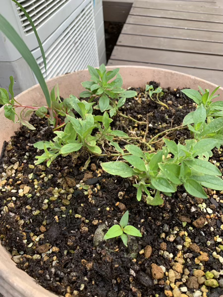 苗で買ったのに、キャンプ中の蒸れで、枯れそうなサフィニアの鉢にも。