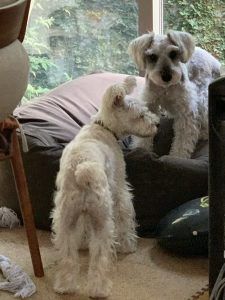 気に入らないの! じん 2020.08.09 ななの吠え声がします。 しつこい。 なにがあった? 見てみたら。 なながじんを追い詰めてました。(^^:) どうした? なにがあった?? 2人の関係は、わからないですねー。