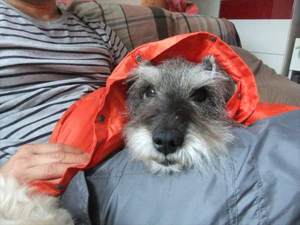 なので、セーターを着せ、ダウンのケットをかぶせ、