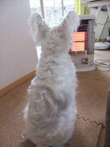 ストーブをガンガン焚いても、震えています。(゜.゜)