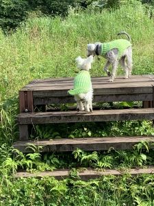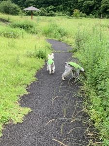 と、あちこち走り回った結果、びしょ濡れ犬に。