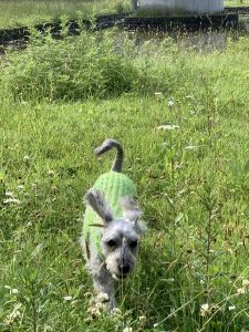 このセーターの緑、草と同化するかな?と心配していたのですが。