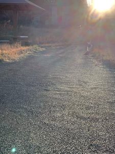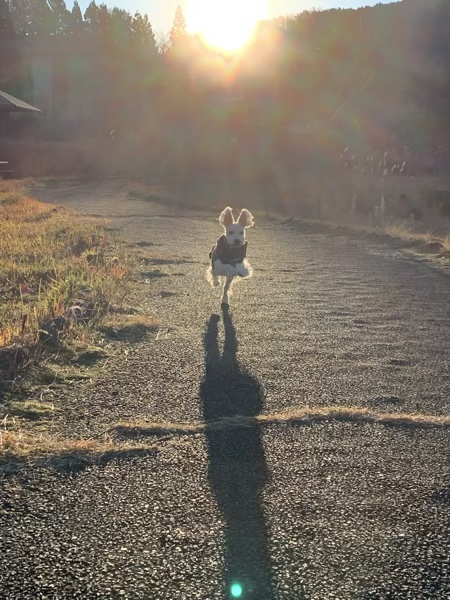 寒いけど、朝日が当たる中でのほかほかのご飯。