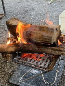 広葉樹の太い木は、なかなか燃えないのですが、これは割れなかった…。