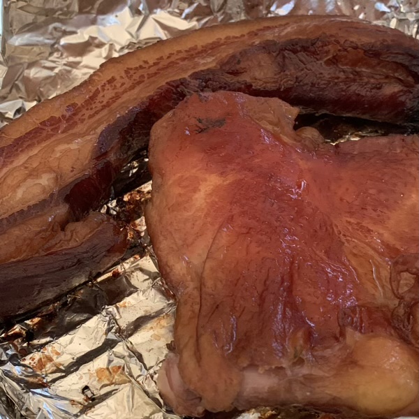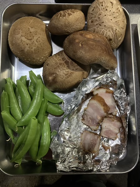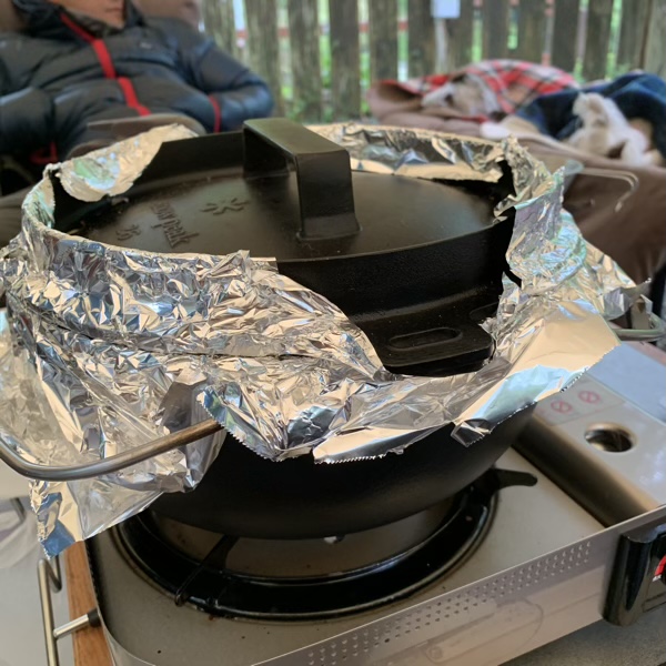 燻製 ACNオーキャン宝島 2021.05.01 今日は燻製作りをしました。 ダッチを巻いて、準備完了! まずは、我が家定番のししゃもや練り物、ナッツなど。 そして、久しぶりの大イベント! スモークチキンとベーコンです。 漬け込み液(ソミュール液)も成功し、 塩抜きも成功し、 燻製も成功! 今回はいい出来です!(o^^o) 早速晩ご飯にいただきました。 って、そのベーコンが小さく見えるぐらいのしいたけ! こういうりっぱなの、キャンプに来ると、お手軽な価格で出会えます。 贅沢です。(o^^o)