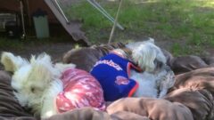 昨日はじんが犬コットで寝てくれました。