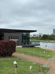 こちらは、川辺にスタバがあり、