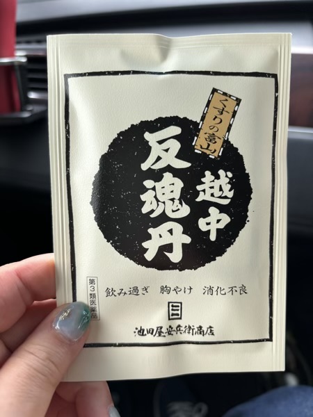 このお薬は反魂丹といい、二日酔いやその予防に効くとか。