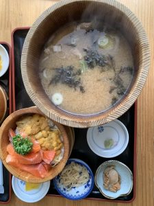 と、名物の石焼き鍋を食べようとまた入道崎に戻ったら。