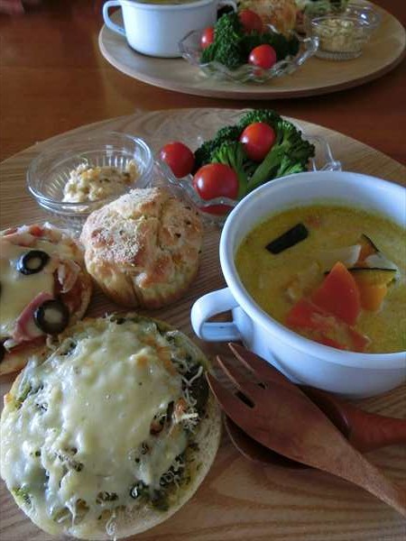ベーグルのオープンサンドは、ミートソースさえ手作り。